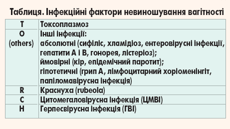 Найпоширенішою причиною НВ є інфекційні фактори: віруси, бактерії, стрепто- і стафілококи, клебсієли, протей, мікоплазми тощо, об'єднані в так званий клас TORCH-інфекцій (табл.).