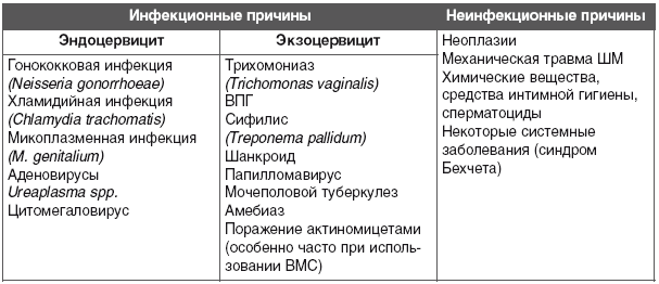 Экзо- и эндоцервициты обычно дифференцируют от уретрита и другой патологии ШМ (вагинита, РШМ, синдрома Райтера).