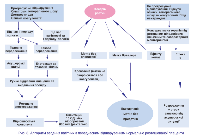 - препарати, які скорочують матку (10 ОД окситоцину в/в крапельно або 0,5 мкг метилергобревіну в/в або в/м);