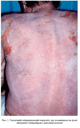 Отже, описаний клінічний випадок синдрому Лайєлла для пацієнтки мав сприятливе завершення. На жаль, зазвичай прогноз ТЕН несприятливий, смертність від нього, згідно з даними різних авторів, сягає 30-70%. Слід зазначити, що небезпека і тяжкість ТЕН пов’язані не лише з внутрішнім мультисистемним ураженням, тяжким ушкодженням слизових оболонок та шкіри, але й з імовірністю розвитку сепсису, оскільки ерозії заселяються золотистим стафілококом та грамнегативною флорою. До того ж надання допомоги далеко не завжди є своєчасним, адже ТЕН є досить рідкісним захворюванням і не всім лікарям відомі його основні симптоми. Первісно тяжкий стан хворого часто не дозволяє з’ясувати подробиці історії хвороби та подій, що їй передували. Коли ж перед лікарем постає розгорнута картина захворювання, зокрема значне відшарування епідермісу, патологічний процес заходить настільки далеко, що навіть екстрені заходи не допомагають.