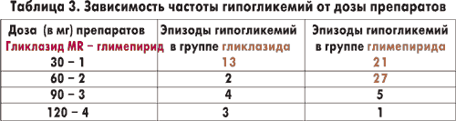 Интересно, что зависимость частоты гипогликемий, зарегистрированных в исследовании GUIDE, от дозировок обоих препаратов несколько противоречит известной закономерности, при которой чем выше доза, тем выше риск гипогликемий (табл. 3).
