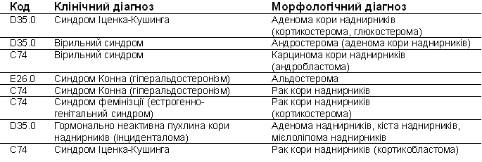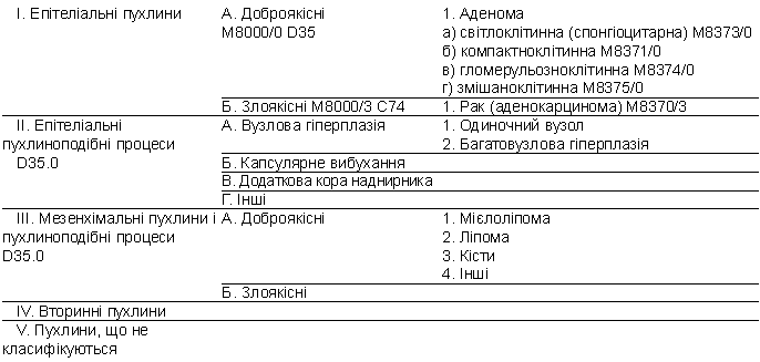 ПУХЛИНИ КОРКОВОГО ШАРУ НАДНИРНИКІВ МКХ-10: D35.0, С74.0, E26.0