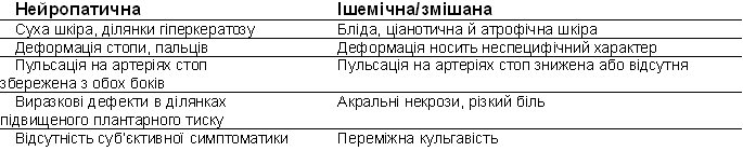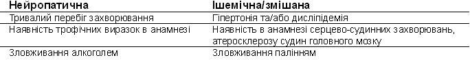 нейропатичної та ішемічної/змішаної форм синдрому діабетичної стопи на підставі даних анамнезу