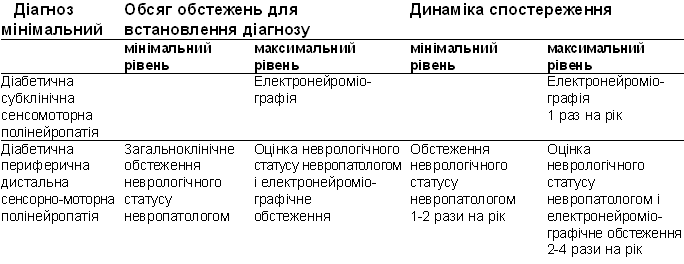 Обсяг обстежень для встановлення діагнозу і динамічного спостереження хворих із діабетичною симетричною сенсомоторною