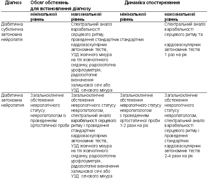 Обсяг обстежень для встановлення діагнозу і динамічного спостереження хворих із діабетичною автономною