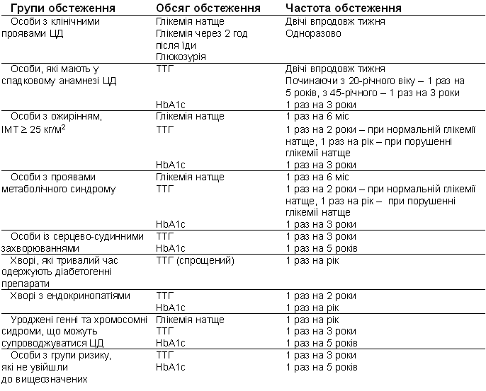 Зважаючи на великий спектр етіологічних чинників, що призводять до порушення вуглеводного обміну, постає необхідність визначити групу ризику для подальшого ретельного обстеження.