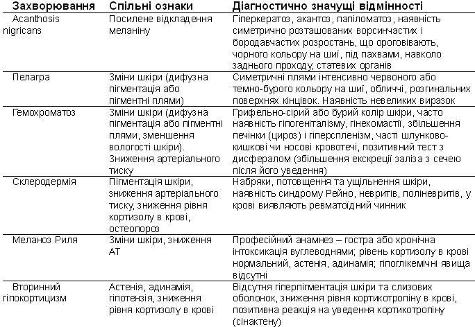 Потрібно проводити диференційну діагностику первинної хронічної надниркової недостатності з наступними симптомоподібними захворюваннями.