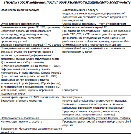 Хлопчикам, чий кістковий вік досяг 12 років, призначають препарати тестостерону пролонгованої дії: тестостерону енантат 50100 мг в/м один раз на місяць або поліестери тестостерону в/м 0,5 мл один раз на місяць. Препарати приймаються курсом у 36 місяців під контролем кісткового віку.