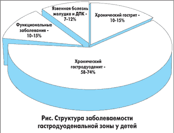 Среди хронических заболеваний пищеварительной системы особое место занимают поражения органов гастродуоденальной зоны, на долю которых приходится 70-75% гастроэнтерологических заболеваний у детей.