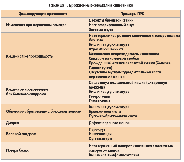 Проявления пороков развития кишечника (ПРК) могут быть различными.