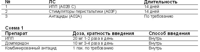 - по возможности ограничение препаратов, вызывающих лекарственный эзофагит (тетрациклин, доксициклин, НПВС, цитостатики и стероидные гормоны);