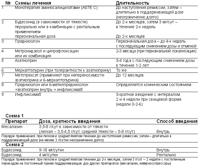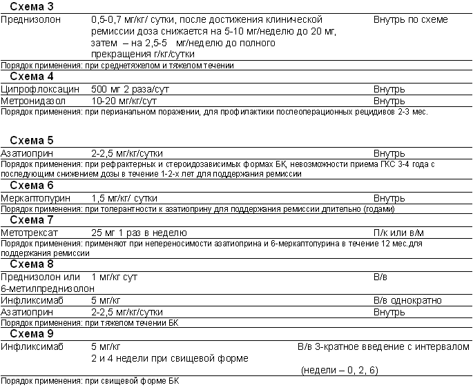 Основной целью лечения при БК является устранение симптомов заболевания и поддержание качества жизни пациента на должном уровне. Выбор лечения определяется локализацией процесса, степенью тяжести воспаления и наличием внекишечных осложнений.
