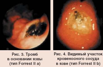 В 1974 г. Forrest и соавт. описали эндоскопические признаки кровотечения из пептической язвы и систематизировали их. В настоящее время эта классификация получила признание во всем мире. Ее преимущество в том, что она является базисной при определении тактики ведения больных с кровотечениями.