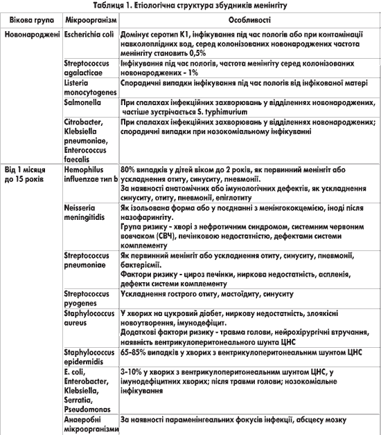 Як показали наші дослідження, клінічні прояви гнійних менінгітів можуть відрізнятися за віком.