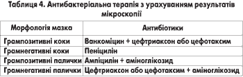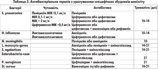 Відомо, що приблизно 50% дітей з менінгітом отримують антибіотики перед встановленням діагнозу. Більшість пацієнтів лікуються амбулаторно, їм призначають антибактеріальну терапію з приводу підозрюваних респіраторних інфекцій. Проведені дослідження показали, що раннє призначення антибіотиків значно зменшує можливість виділення збудника з ліквору за допомогою мікроскопії. У більшості пацієнтів з бактеріальним менінгітом, незважаючи на попереднє лікування, у лікворі зберігаються характерні зміни: переважання нейтрофілів, низький вміст глюкози, підвищений рівень білка (табл. 2). Попереднє проведення антибактеріальної терапії значно впливає на результати бактеріологічної діагностики гнійного менінгіту, особливо якщо збудник чутливий до антимікробного засобу. Найчастіше це спостерігається при менінгококовому менінгіті в разі призначення антибіотиків пеніцилінової групи. Слід відмітити, що після призначення антибіотика спинномозкова рідина не завжди швидко санується, навіть якщо збудник не виділяється при фарбуванні за Грамом та бактеріологічному дослідженні.