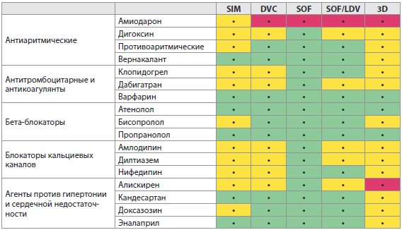 Таблица 4E Лекарственные взаимодействия между ВГС ПППД и сердечно-сосудистыми препаратами
