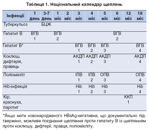 Новий календар щеплень, наближений до західних аналогів, створює можливості для максимально безпечного проведення вакцинації. Однак його недоліком є збільшення кількості ін'єкцій у 3 і 4 міс до 3, а за відсутності щеплення проти гепатиту В у пологовому будинку – навіть до 4 ін'єкцій на один день. Все це ускладнює проведення вакцинації. Слід зазначити, що в Україні зареєстровані й уже давно використовуються у дітей з порушенням графіку щеплення комбіновані вакцини, котрі дозволяють за допомогою однієї ін'єкції провести імунопрофілактику проти 4, 5 і навіть 6 інфекцій. Шестивалентна вакцина (DTPa-HBV-IPV/Hib), яка виготовляється фірмою «ГлаксоСмітКляйн» і зареєстрована в Україні, добре вивчена в клінічних дослідженнях і широко застосовується в усьому світі. Показано, що формування імунітету при введенні шестивалентної вакцини зіставне з імунітетом, сформованим при використанні кожного її компоненту окремо. Незважаючи на те що шестивалентна вакцина містить більше антигенів, вона значно менш реактогенна, ніж цільноклітинна комбінована вакцина. До її складу не входять консерванти, що містять ртуть. В Україні також є досвід використання гексавалентної вакцини для імунопрофілактики інфекцій у дітей за станом здоров'я. Навіть у дитини з уродженим бульозним епідермолізом ми не спостерігали жодної побічної реакції.