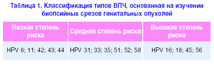 Необходимо отметить, что не все типы ВПЧ способны вызывать необратимую неоплазию. В связи с этим ВПЧ классифицируют по канцерогенному потенциалу (табл. 1).