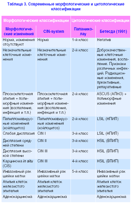 Морфологические изменения шейки матки, вызываемые ВПЧ, представляют собой спектр предраковых поражений, которые, в свою очередь, обозначаются как цервикальная интраэпителиальная неоплазия (CIN) или дисплазия, способная прогрессировать в плоскоклеточную карциному. Классификация, предложенная Национальным институтом по изучению рака США (Betesda, 1991), подразделяет плоскоклеточные интраэпителиальные поражения (SIL) на две категории: низкой и высокой степени тяжести (Lov&High grade). Клеточные элементы, которые трудно поддаются классификации, именуются как атипичные клетки плоского эпителия неопределенного значения (atypical skvamous cell undetermined significance, ASCUS). Плоскоклеточные интраэпителиальные поражения низкой степени тяжести объединяют цитологические изменения, указывающие на слабую дисплазию (СIN І) и ВПЧ-индуцированные морфологические изменения (койлоцитотическая атипия). SIL высокой степени тяжести включают умеренную дисплазию (CIN ІІ), тяжелую дисплазию и карциному in situ (CIN ІІІ). При этом дисплазия без лечения может наблюдаться в течение длительного времени и даже спонтанно регрессировать, хотя со степенью прогрессии и возрастом шансы на это уменьшаются, и в сроки от 2 до 10 лет данные предраковые поражения могут привести к инвазивному раку шейки матки. Многочисленными эпидемиологическими и лабораторными исследованиями было установлено, что в 100% случаев первичным событием в патогенезе рака шейки матки является инфицирование ВПЧ при половом контакте (при этом в плоскоклеточном раке шейки матки в основном присутствуют ВПЧ-16, а в аденокарциномах и низкодифференцированных опухолях – ВПЧ-18) [8].