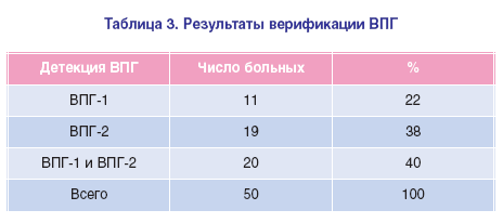 Результаты верификации ВПГ у наблюдаемой группы лиц представлены в таблице 3.