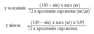 У клініці широко використовують непрямий показник швидкості гломерулярної фільтрації – розрахунковий кліренс ендогенного креатиніну. Його обчислюють за формулами: