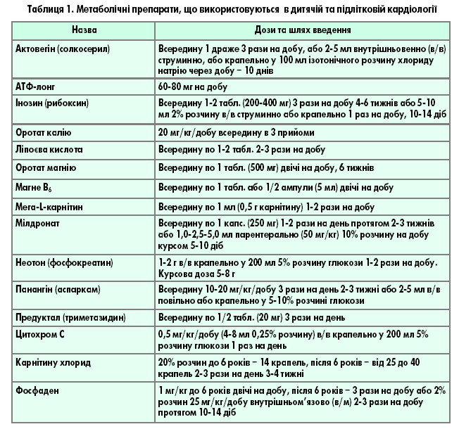 Саме тому для нормалізації клітинного метаболізму відновлення енергопостачання кардіоміоцитів та репаративних процесів у серцевому м'язі використовують полівітамінні засоби, адекватно скомпоновані за складом та добовими потребами дитини, що дає змогу нормалізувати основні ланки метаболічних порушень за рахунок оптимізації білкового, вуглеводного та жирового обмінів.