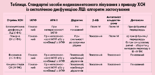 ІАПФ показані всім пацієнтам (за винятком випадків протипоказань або непереносимості) із систолічною дисфункцією ЛШ (ФВ – 45% і більше) незалежно від наявності в них клінічних проявів СН (І-IV ФК за NYHA).