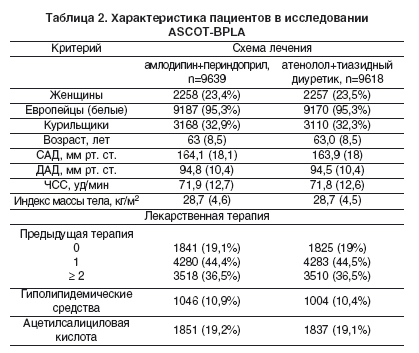 Характеристики пациентов, включенных в исследование ASCOT-BPLA, приведены в таблице 2.
