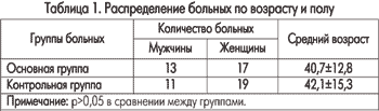 В группу больных, получавших исследуемый препарат, и группу контроля вошли больные, практически равнозначные по возрасту и полу (табл. 1).