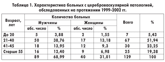 При обязательных периодических медицинских профилактических осмотрах сотрудников Харьковского метрополитена, которые включают исследования системы гемостаза (протромбиновый индекс) и глюкозы крови, в последнее время отмечено увеличение количества пациентов с начальными формами цереброваскулярной патологии среди лиц молодого и среднего возраста, то есть наиболее трудоспособной части населения. Исследования многих авторов подтверждают широкое распространение хронических церебральных ишемий (ХЦИ) или дисциркуляторных энцефалопатий (ДЭ) [1,5]. Последствиями таких патологий являются не только осложнения, острые нарушения мозгового кровообращения — инсульты, но и сами заболевания приводят к продолжительному и значительному ограничению трудоспособности, а в тяжелых формах снижают уровень самообслуживания больных, ведут к инвалидизации [3,6,8].