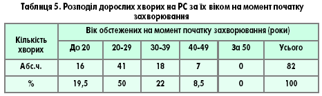 Розподіл хворих на РС дітей залежно від їх віку відображено у таблиці 4.