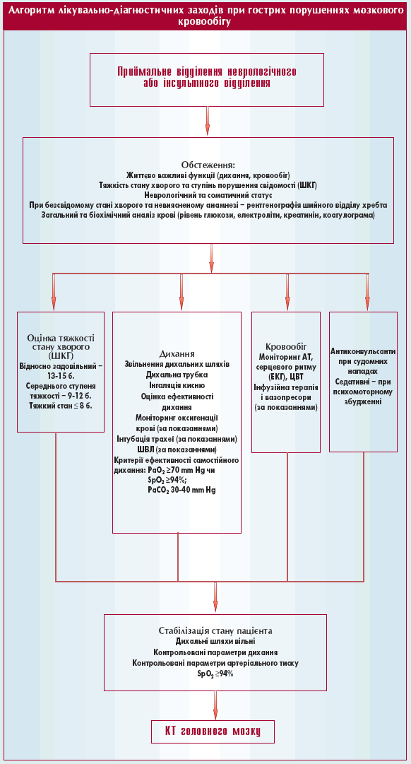 Алгоритм лікувально-діагностичних заходів при гострих порушеннях мозкового кровообігу