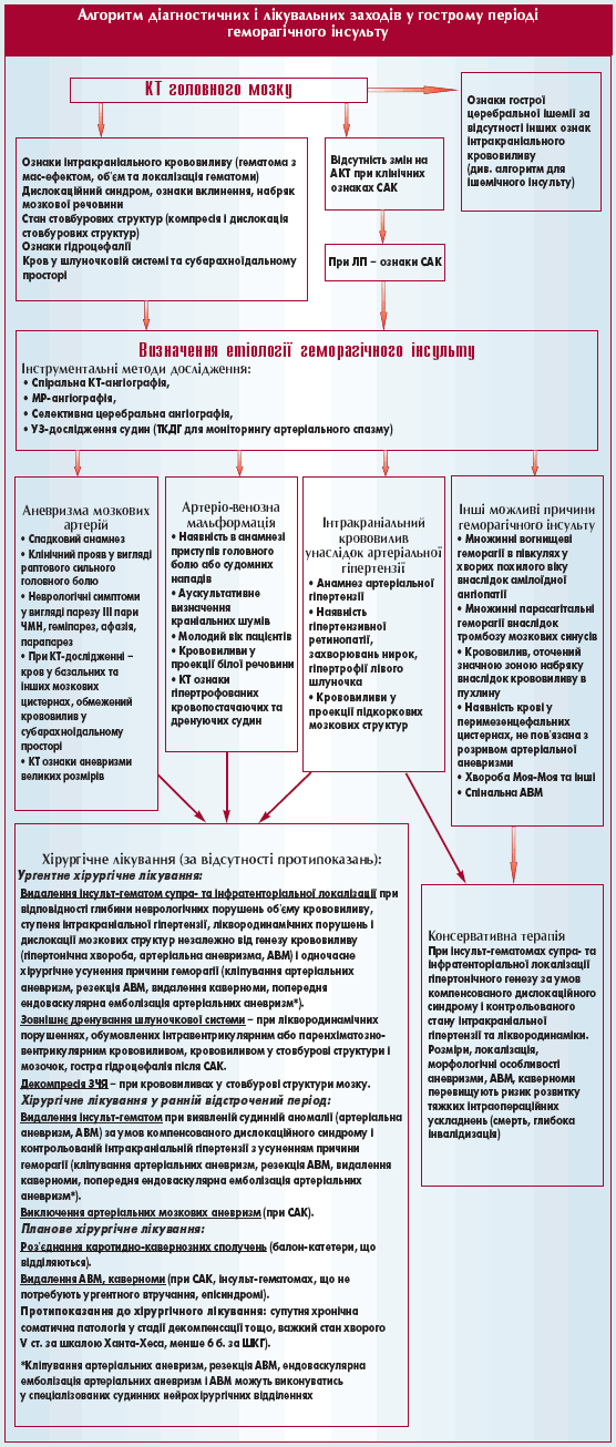 Алгоритм діагностичних і лікувальних заходів у гострому періоді геморагічного інсульту