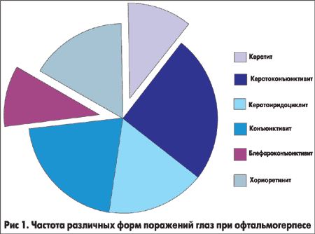 С учетом особенностей патогенеза герпетической инфекции, чрезвычайно разнообразного спектра клинических проявлений лечение больных с хронической рецидивирующей формой генерализованной инфекции (в том числе и поражение глаза) представляет серьезные трудности. Общие принципы терапии и собственный клинический опыт предопределяют комплексный подход к лечению герпетической инфекции, используя противовирусные препараты, иммуномодулирующие средства, активную специфическую иммуностимуляцию [1, 2].
