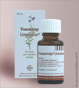 В последние годы достаточно широко с этой целью используют растительный антибиотик с противовирусным и иммуномодулирующим действием Умкалор (в Западной Европе сохранилось его традиционное название — Umckaloabo). Умкалор представляет собой спиртовой экстракт южноафриканского растения пеларгонии (Pelargonium sidoides) и содержит в качестве активных веществ кумарины (преимущественно гликозилированные), флавоноиды, феноловые и органические кислоты. В течение многих десятилетий Умкалор применяется для лечения острых и хронических заболеваний верхних дыхательных путей, таких как ОРВИ, тонзиллиты, ринофарингиты, синуиты и особенно бронхиты.