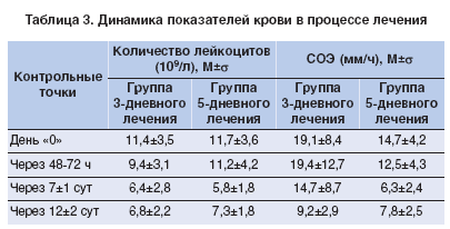 Больным 2-й группы назначались те же антибиотики внутривенно 7-дневным курсом (с возможностью продолжения АБТ по усмотрению лечащего врача).