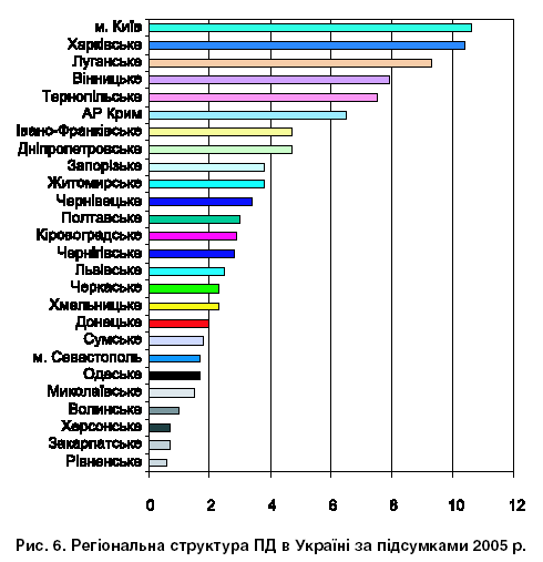 Разом із тим сьогодні розгалужена мережа регіональних відділень Державного фармакологічного центру (ДФЦ) МОЗ України дозволила організувати справу таким чином, що інформація про ПД ЛЗ постійно надходить з усіх регіонів України (рис. 6).