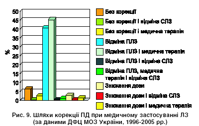 Заслуговують на увагу попередні дані щодо медичних та соціальних наслідків ПД. Тільки 12% хворих, у яких було виявлено ПД, отримували первинно обґрунтовану фармакотерапію (рис. 9). Їм суттєво змінювали всю схему лікування, а також подовжували терміни госпіталізації, непрацездатності тощо. Останнє, крім впливу на якість життя, має соціально-економічні наслідки.