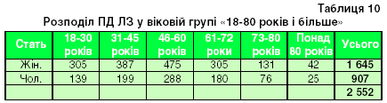 Класифікація за віком хворих, у яких виникали ПД при застосуванні ЛЗ, наведена у таблицях 9, 10.