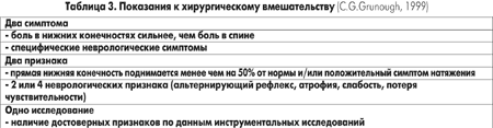 Вопрос о хирургическом вмешательстве в каждом конкретном случае решают врачи разных специальностей: терапевт, невропатолог, ревматолог, ортопед и нейрохирург. В настоящее время показания к оперативному лечению значительно сужены (табл.3).