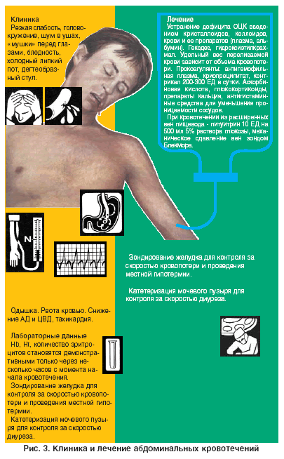 Описание клинической картины и принципов терапевтического ведения больного с абдоминальным кровотечением представлено на рисунке 3.