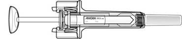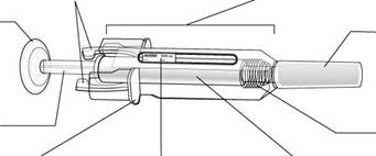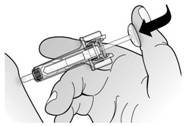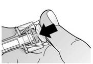 Тисніть на поршень до упору, поки не введеться вся рідина. Прозорий запобіжник голки не буде активований, поки попередньо наповнений шприц не буде порожнім. |