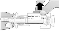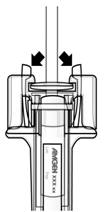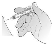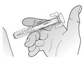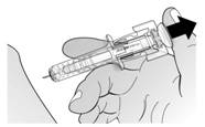 5. У той час як поршень все ще натиснутий до упору, витягніть голку зі шкіри, потім відпустіть поршень, щоб дозволити шприцу переміщуватись вгору, поки вся голка не буде закрита прозорим запобіжником голки. Якщо прозорий запобіжник голки не активований, може мати місце неповна ін'єкція. Зателефонуйте своєму лікарю, якщо ви думаєте, що не отримали повну дозу. |