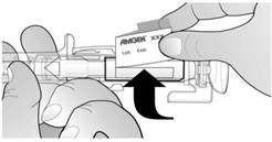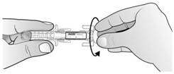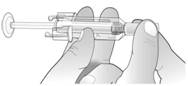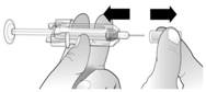 1. Тримайте шприц як показано і повертайте поршень до себе поки ви не побачите закладену етикетку у межах відкритого віконця, як показано. |