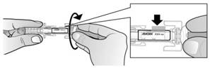 2. Легко поверніть поршень від себе до моменту, поки етикетка з’явиться за межами віконця. |