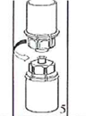 4. Помістіть флакон з препаратом на рівну тверду поверхню. Переверніть флакон з розчинником з приєднаним до нього пристроєм Mix2Vial, потім гострим стрижнем прозорої частини пристрою проткніть прямо вниз пробку флакону з порошком. Розчинник автоматично переміститься до флакону з порошком. |