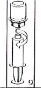 8. Тримаючи поршень шприца натиснутим, переверніть систему догори дном і втягніть відновлений розчин у шприц, повільно відтягуючи поршень назад. |