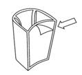 Картонна коробка містить також адаптер для дозуючого пристрою, який може використовуватися для його зберігання. На боці адаптера, який є увігнутим, знаходиться липка поверхня, яка може бути приєднана до пляшки. Зніміть захисну фольгу з липкої поверхні.