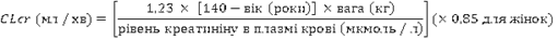 Зменшення дози у пацієнтів із порушенням функції нирокслід проводити індивідуально, відповідно до показника кліренсу креатиніну (CLcr), як зазначено у Таблиці 1. Кліренс креатиніну визначають за формулою:
