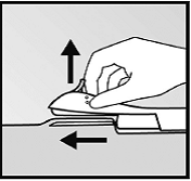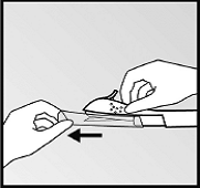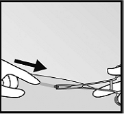 Слід перевірити аплікатор. Голка повинна бути повністю відведена, повинен виднітися лише червоний кінчик обтюратора.